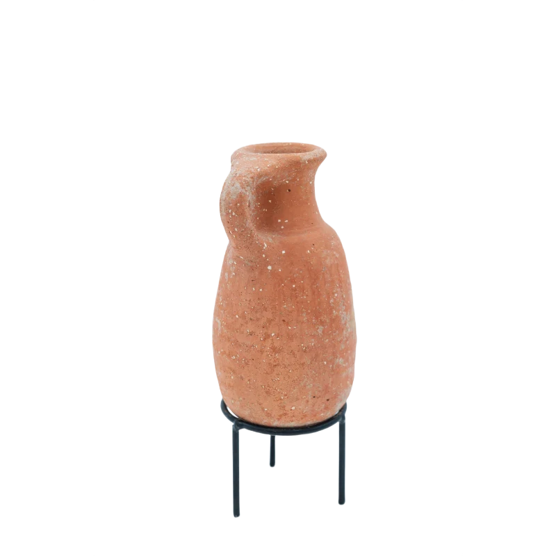 This Small Brown Jug is a charming piece of ancient pottery, crafted for everyday use centuries ago. Its warm brown tones, compact shape, and naturally aged finish give it a timeless appeal perfect for collectors and décor enthusiasts.
